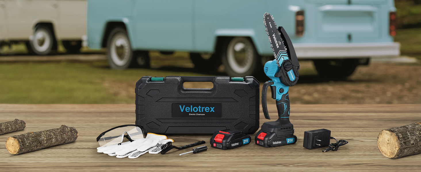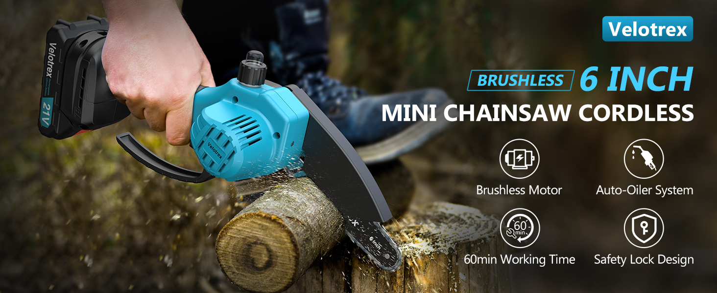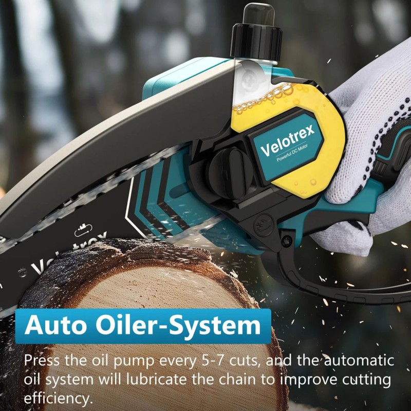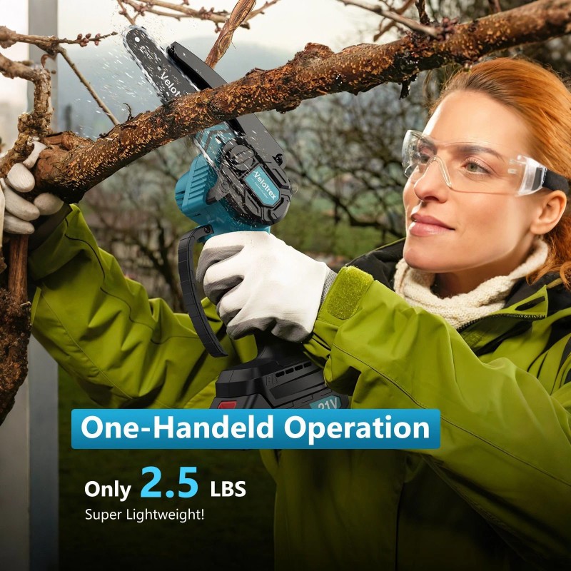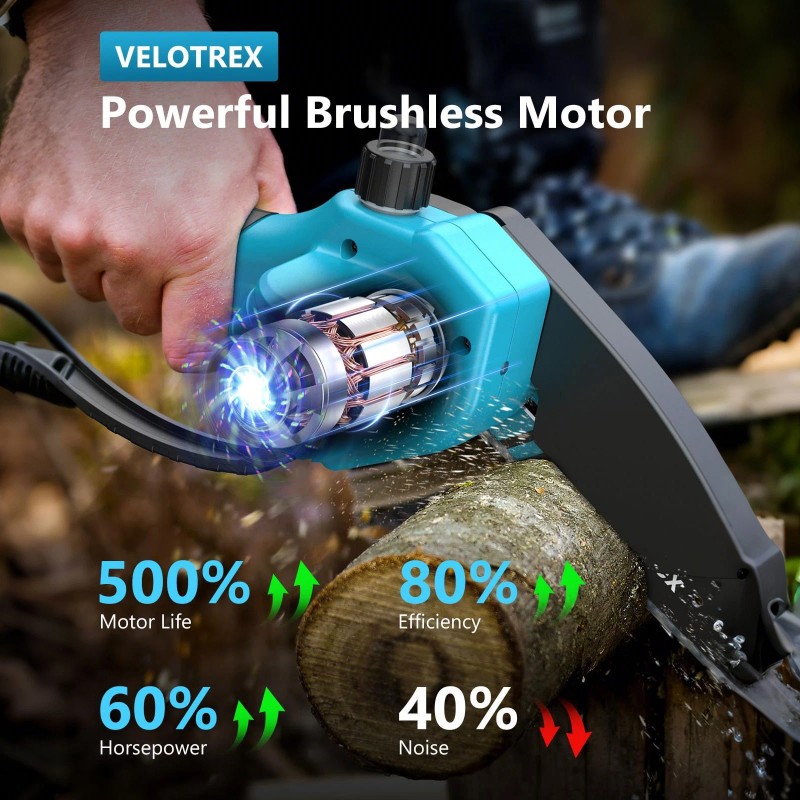 Velotrex 2 Battery Mini Electric Chain Saws Brushless Cordless Handheld Portable Chainsaw