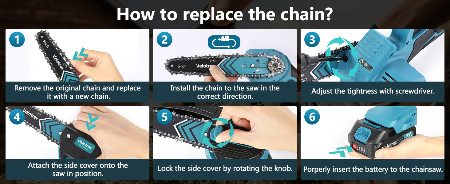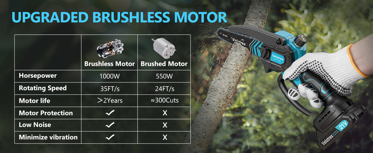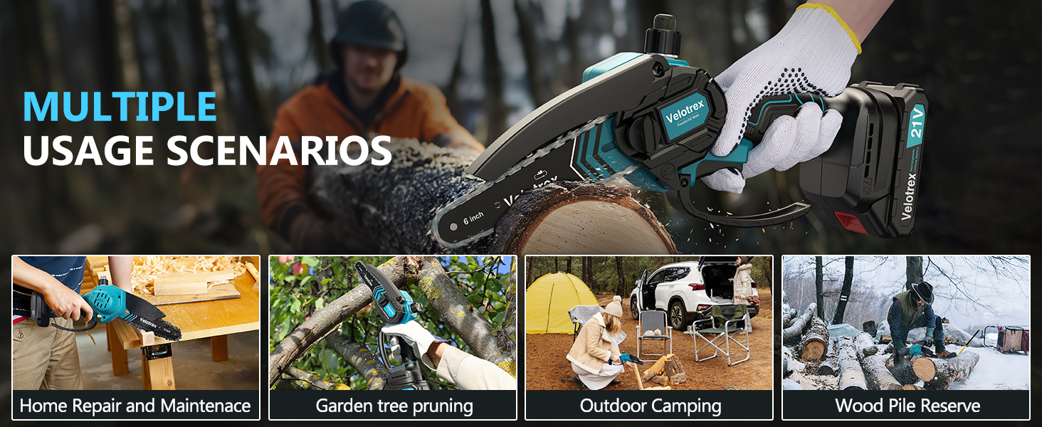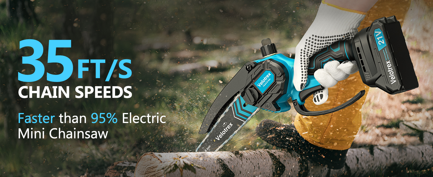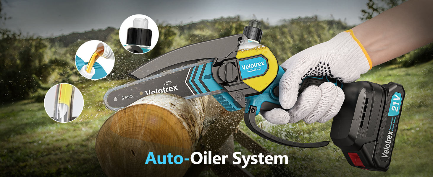 Velotrex 2 Battery Mini Electric Chain Saws Brushless Cordless Handheld Portable Chainsaw