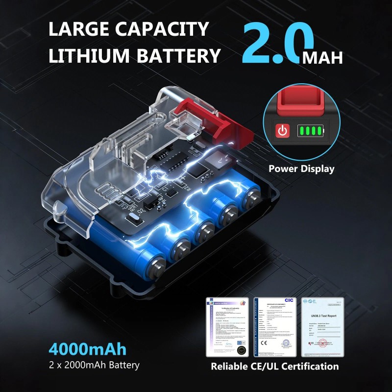 - Battery Indicator Display Level: 0%-25%-50%-75%-100%