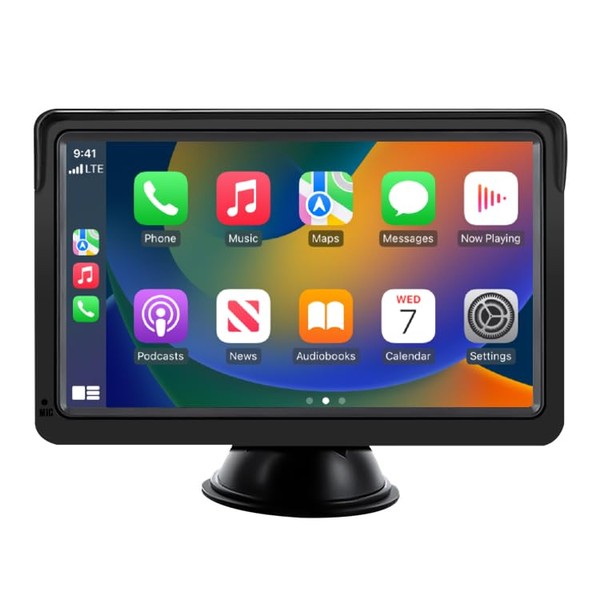 Veloxar Portable Wireless 7" Touchscreen Head Unit with Apple CarPlay & Android Auto - Easy Installation, Compatible with All Cars (Dashboard + Reverse Camera)