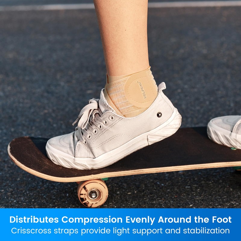 Velpeau Foot & Ankle Support Brace Compression Sleeve with Adjustable Strap, Elastic Wrap for Plantar Fasciitis, Achilles Tendonitis, Sprained, Sports Bandage Sock for Men & Women(Single, Khaki, Reg)