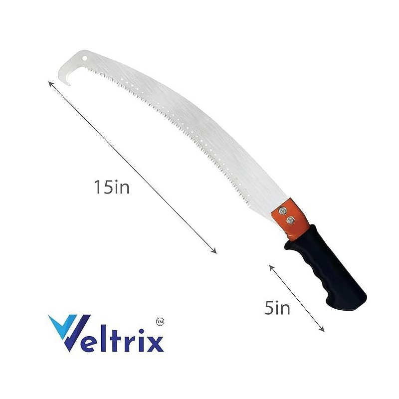 Veltrix - Pruning Gardening Saw (21 inch) with Pole Fixing Slot | Curved Blade Hand Saw with Hook | Garden Tree Pruner | Comfort Rubber Handle | Ideal for Branch Cutting, Gardening, and Tree Trimming