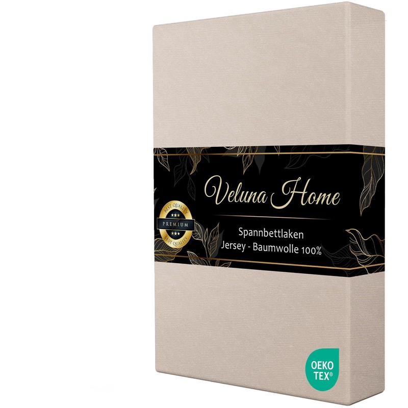 Veluna Home Premium Fitted Sheet 140 x 200 cm - Beige - 100% Cotton Fitted Sheet 150 g/m², Oeko-Tex Certified, Jersey Flat Sheet, Fitted Sheet, Mattress Height up to 30 cm