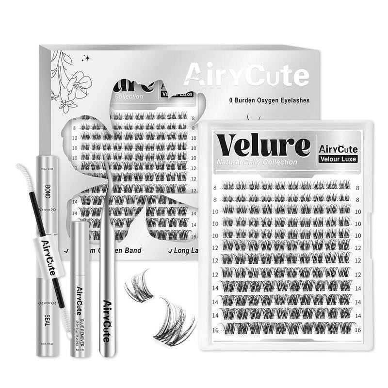 Velure | AiryCute Velour Luxe Collection Upgrade U Lashes with Ultra-Dense, Waterproof, Long-Lasting Lashes | Venus | Natural Daily | Beginner-Friendly DIY Lashes for a Flawless, Voluminous Look | Trendy & Must-Have Clusters:_Velure Kit [natural daily style]