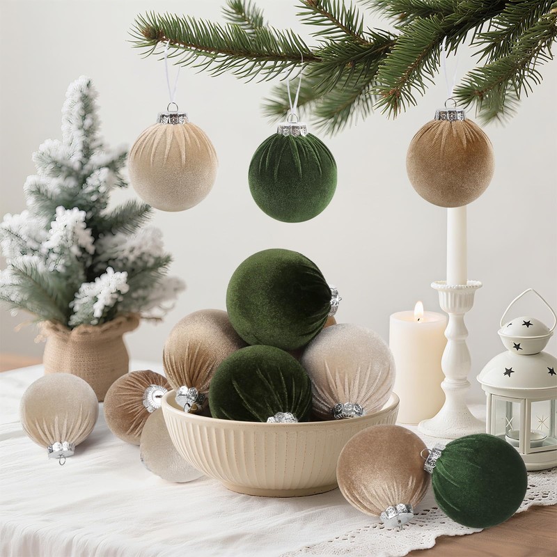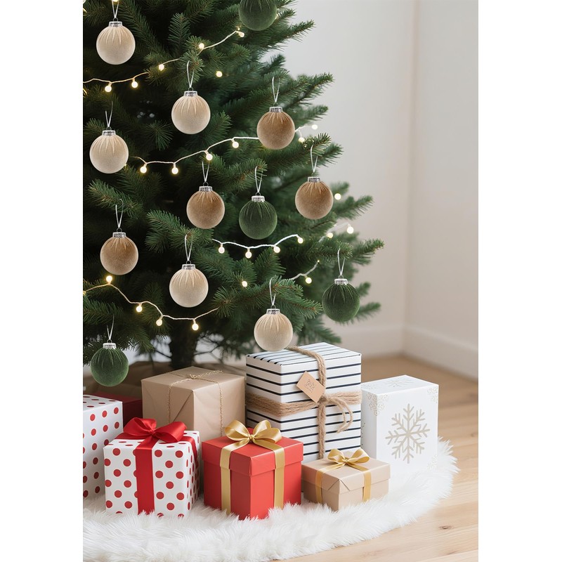 - Luxurious Flocked Ball Ornaments:Our Christmas balls are made of flocked material for a comfortable and soft touch, with a pleated top. Velvet Christmas decorations will add a touch of nostalgia to your holiday decor, creating a warm and elegant winter atmosphere in any space