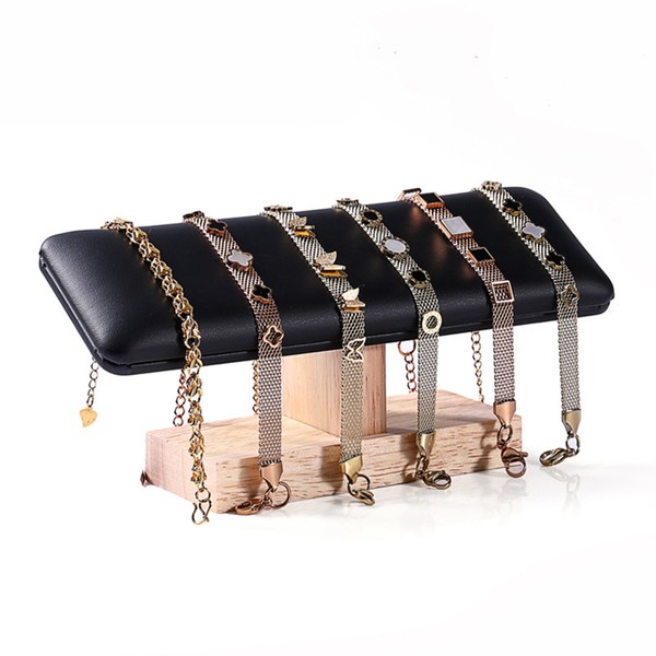 Velvet Covered Wood Bracelet Holder,T-Bar Woodten Watch Display Stand Jewelry Display Organizer Holder,Bangle Pendants Anklet Tower Rack Jewelry Tower for Home Retail Display Selling (Black Leather)