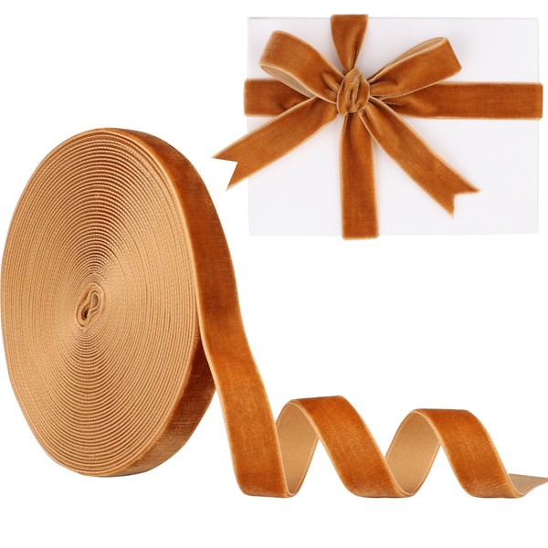 Velvet Ribbon 5/8 Inch (15mm) 10 Yards Manjonzic Single-Sided Velvet Ribbon Trim Perfect for Christmas Trees Gift Wrapping Bouquets Wedding Decor Copper