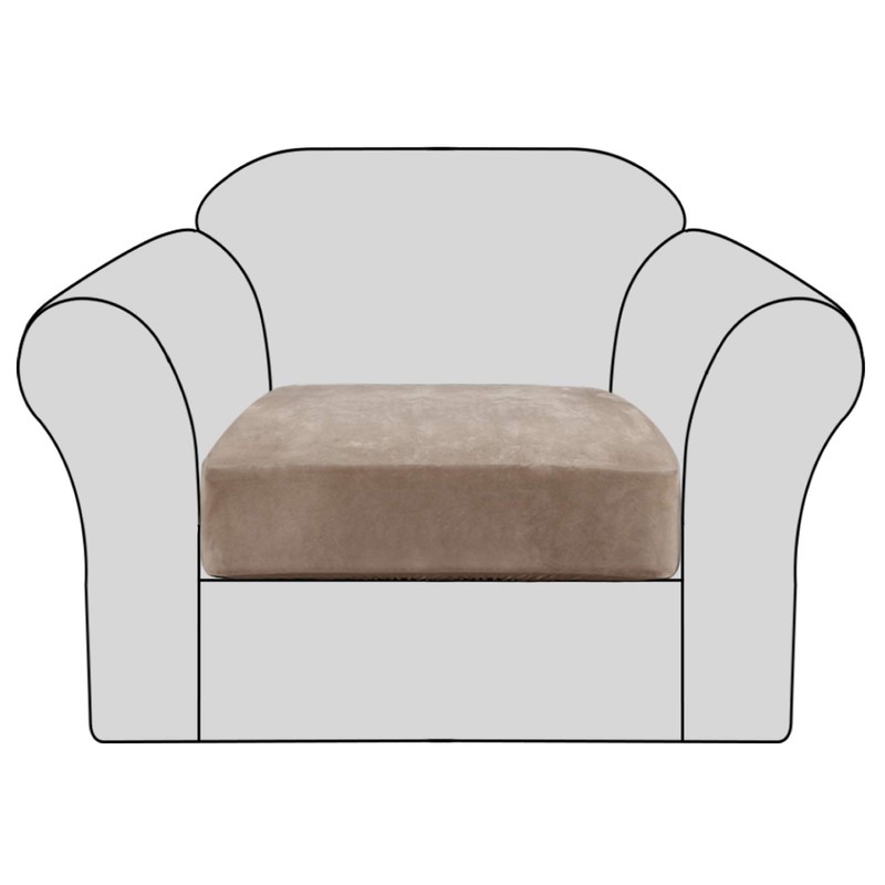 Velvet Stretch Couch Cushion Cover Plush Cushion Slipcover for Chair Cushion Furniture Protector Seat Cushion Sofa Cover with Elastic Bottom Washable (1 Pack, Taupe)