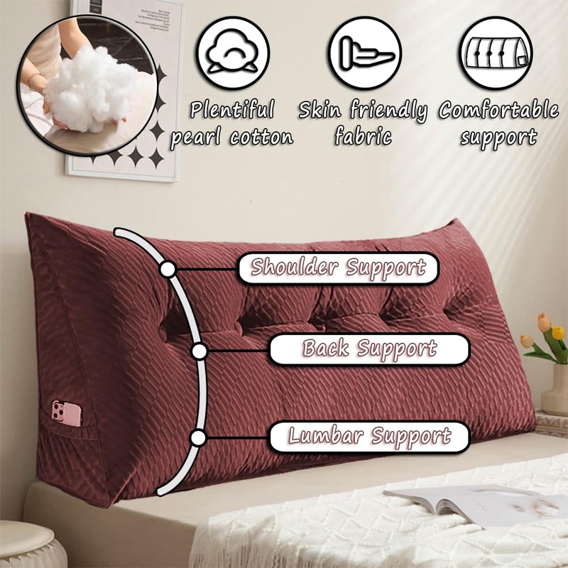 Velvet Triangular Headboard Wedge Pillow,Removable Cover Headboard Pillow Day...