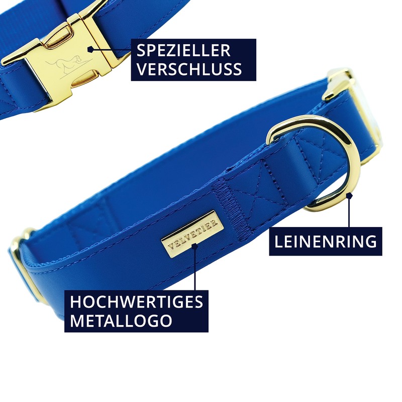 VELVETIER® Dog Collar, Stylish Dog Collar Made of Vegan Microfibre Leather, for Small and Large Dogs (S/M: 29 - 41 cm, Royal (Blue)