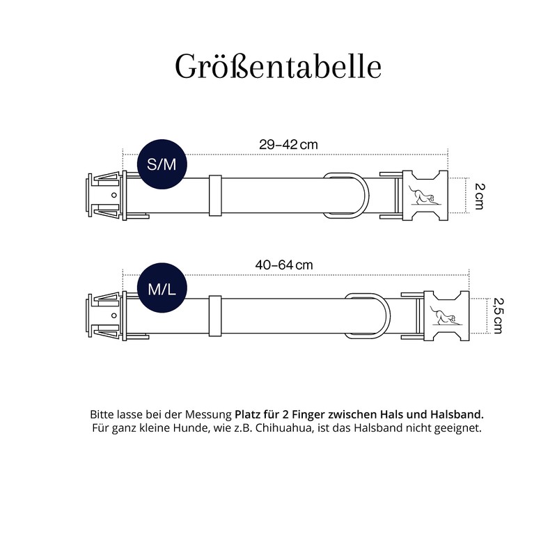 - Various sizes: whether retriever, Aussie or French bulldog, just choose the appropriate collar size. However, the collar is not suitable for very small dogs (e.g. Chihuahua). Please measure the neck circumference of your dog before ordering and leave 2 fingers "air" (not too tight).