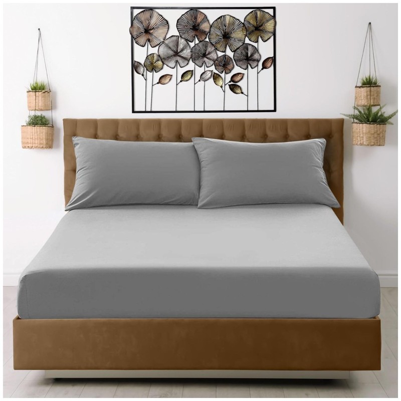 VELVETIO Easy Care Plain Grey Fitted Sheet, Soft Breathable 100% Polyester Fade Resistant Bedding Sheets, 25 CM Extra Deep Microfiber Fabric Bedsheet, Single Size