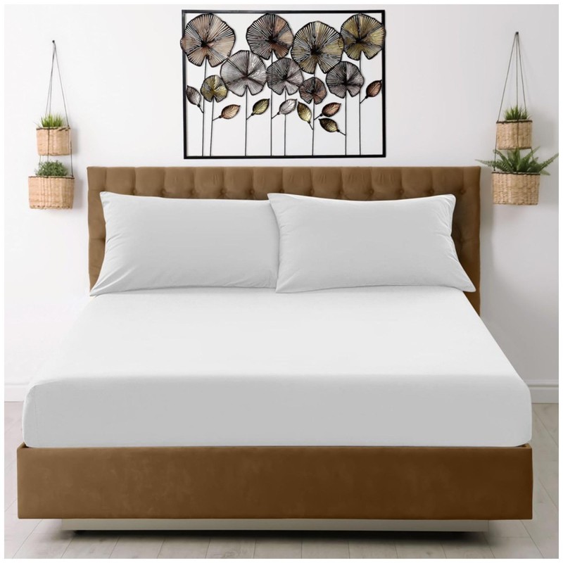 VELVETIO Easy Care Plain White Fitted Sheet, Soft Breathable 100% Polyester Fade Resistant Bedding Sheets, 25 CM Extra Deep Microfiber Fabric Bedsheet, Single Size