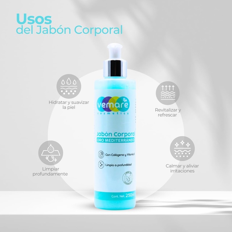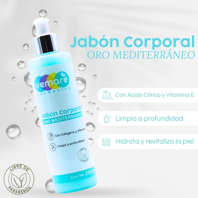 Vemare Cosmetics Jabón Líquido Corporal de Oro Mediterráneo Limpieza Profunda 250ml