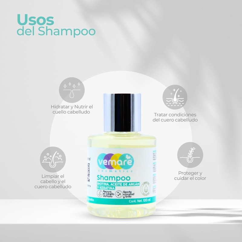 Vemare Cosmetics Shampoo de Biotina, Aceite de Argán y Keratina Repara el Cabello Dañado100ml