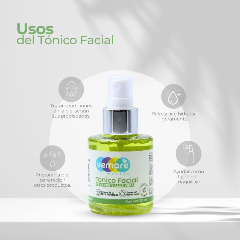 Vemare Cosmetics Tónico Facial De Té Verde Y Aloe Vera Calmante 100 ml