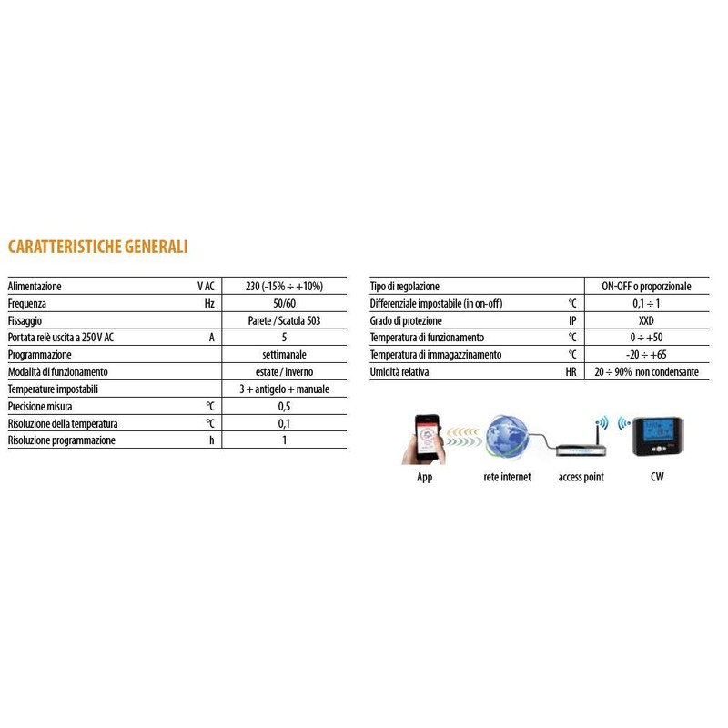 - Smart WiFi thermostat with weekly programming with 3 selectable temperature levels; safety temperature (frost protection) to avoid possible freezing of the system