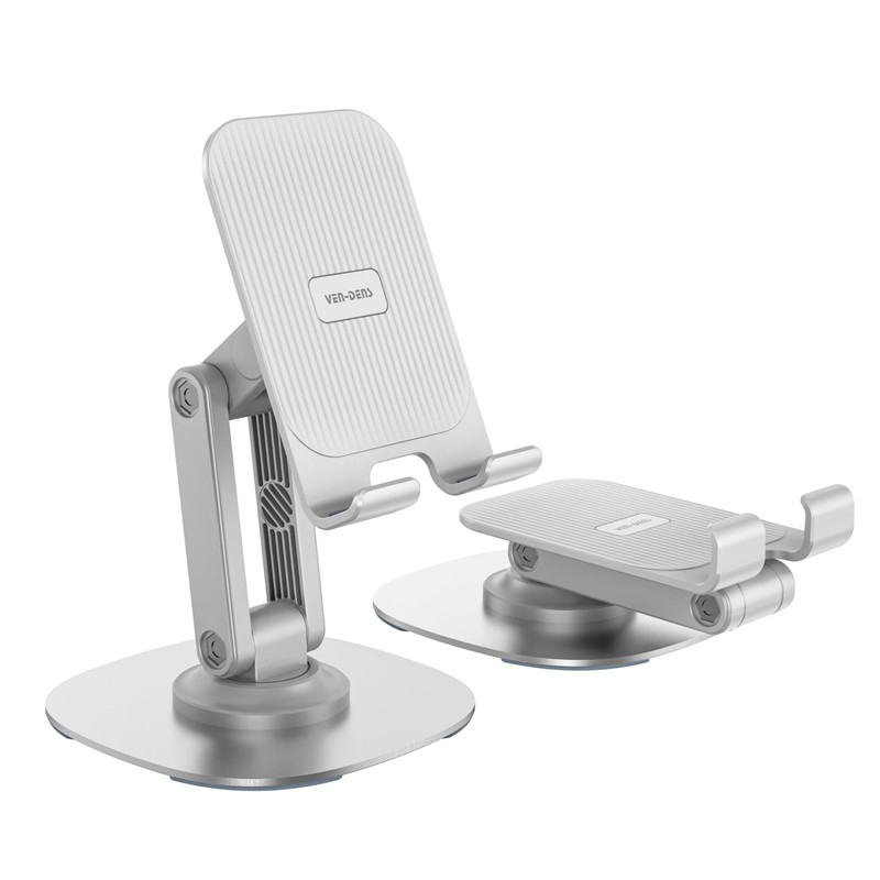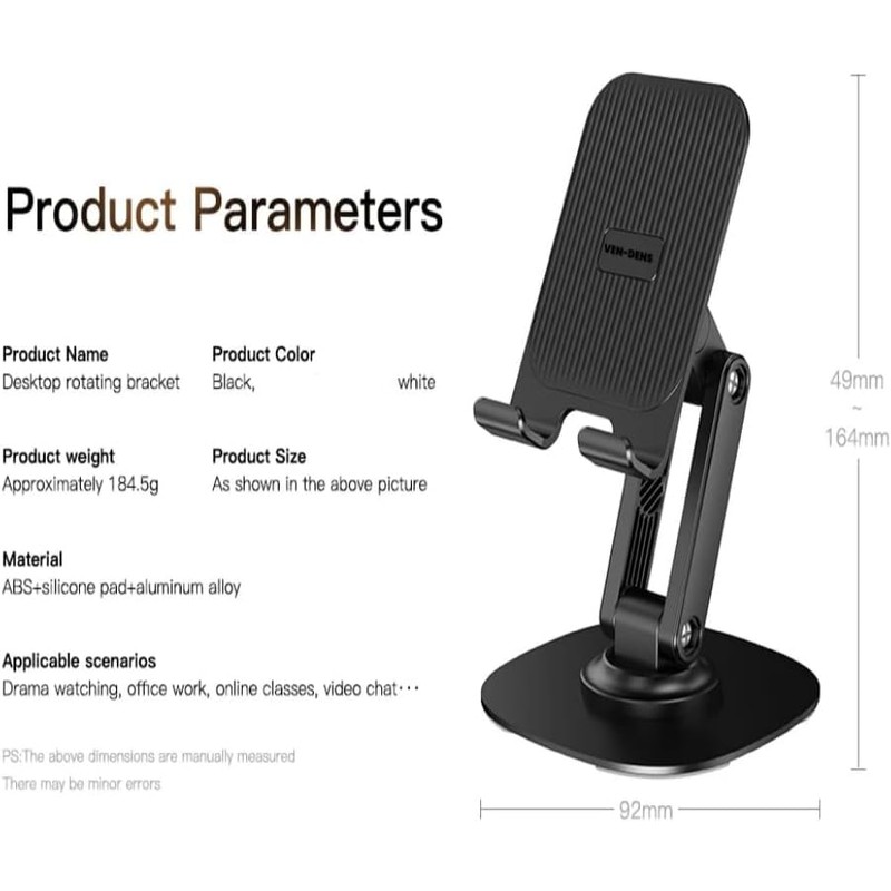 VEN-DENS Smart Phone Holder 2 Variants Desktop Stand Multi Height Adjustable 360 Rotation Universal Compatibility/Dual Shaft for Multi Angle and infinite Flexibility 360° Click-Rotating (White)
