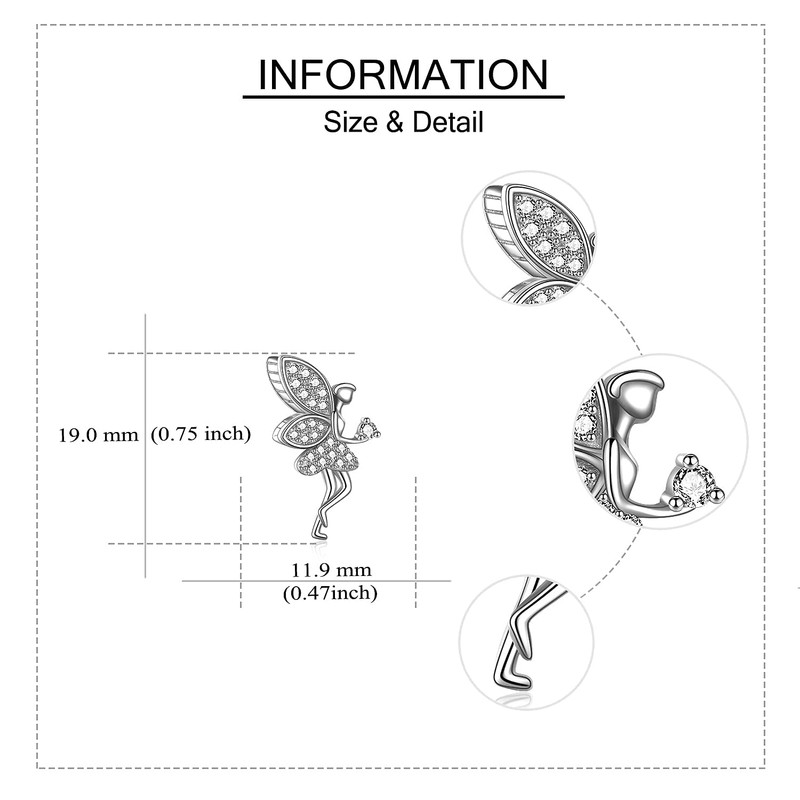 - Size: The fairy stud earrings silver jewellery:0.47*0.75 inch. Packaging: 1x pair of fairy women stud earrings; 1 x polishing cloth and 1 x exquisite gift box. Dainty stud earrings for girls;