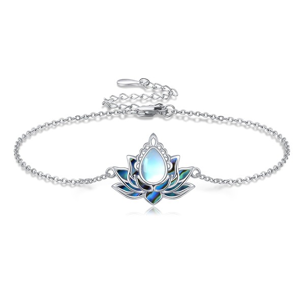 VENACOLY Lotus Bracelet 925 Sterling Silver Abalone Shell Moonstone Lotus Flower Bracelets Yoga Jewellery for Women Mom