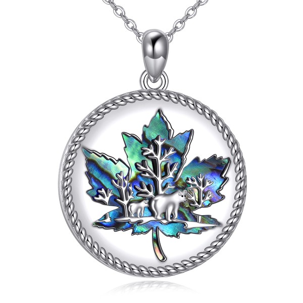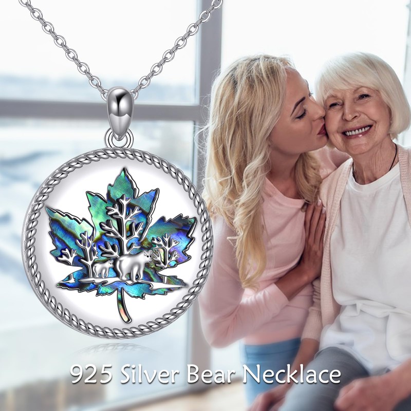 VENACOLY Mama Bear Abalone Shell Necklace 925 Sterling Silver Bear Pendant Jewellery Gifts for Women Bear Lovers