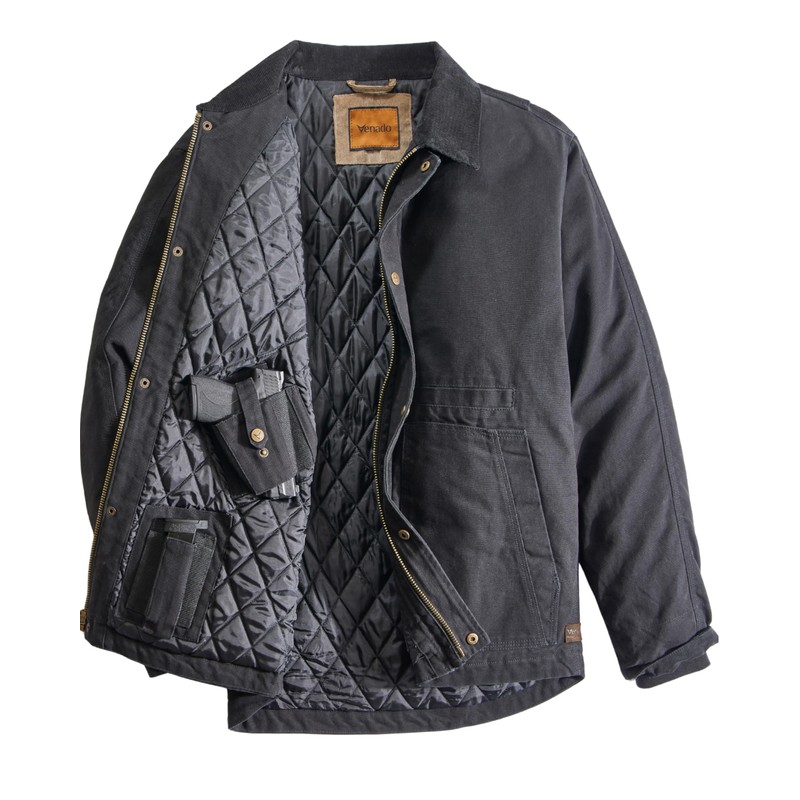 Venado Concealed Carry Jacket for Men - Heavy Duty Canvas - Conceal Carry Pockets (Black, XXX-Large)
