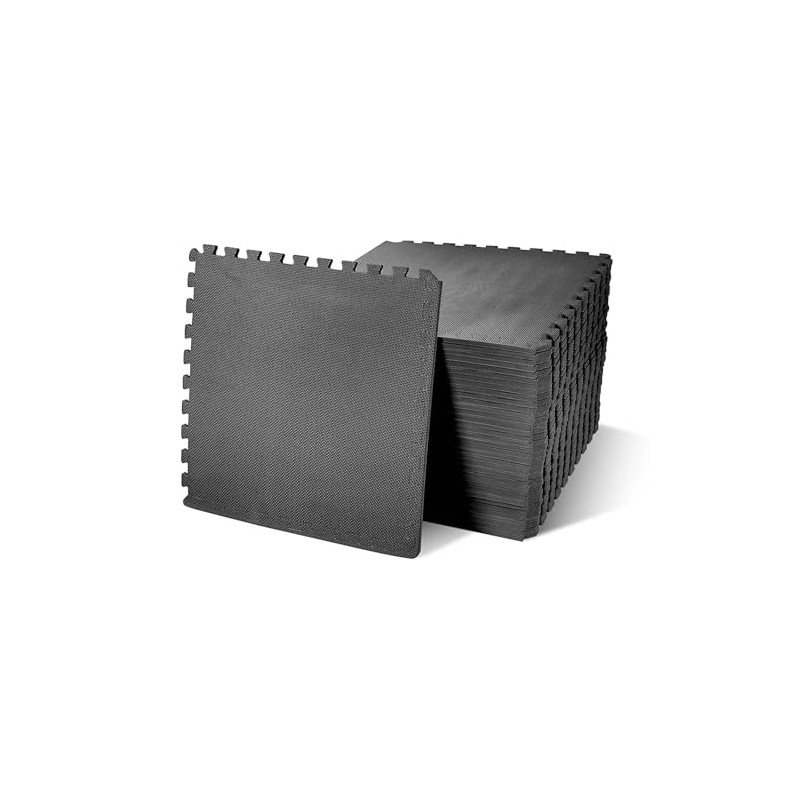 - Create a comfortable with these interlocking EVA foam exercise mat tiles, covering up to 144 sq ft in black color.