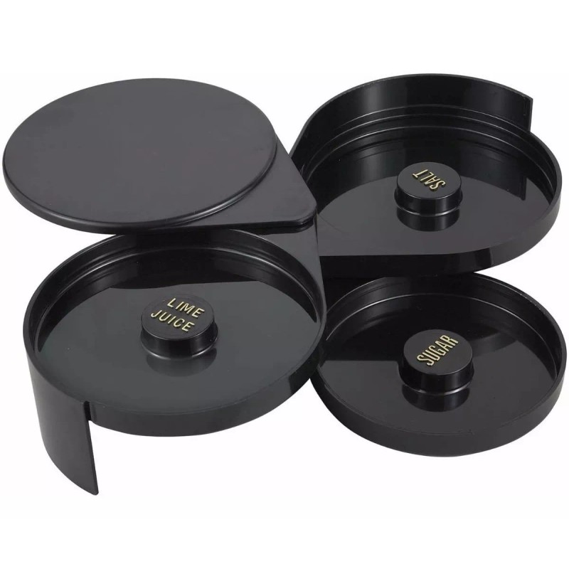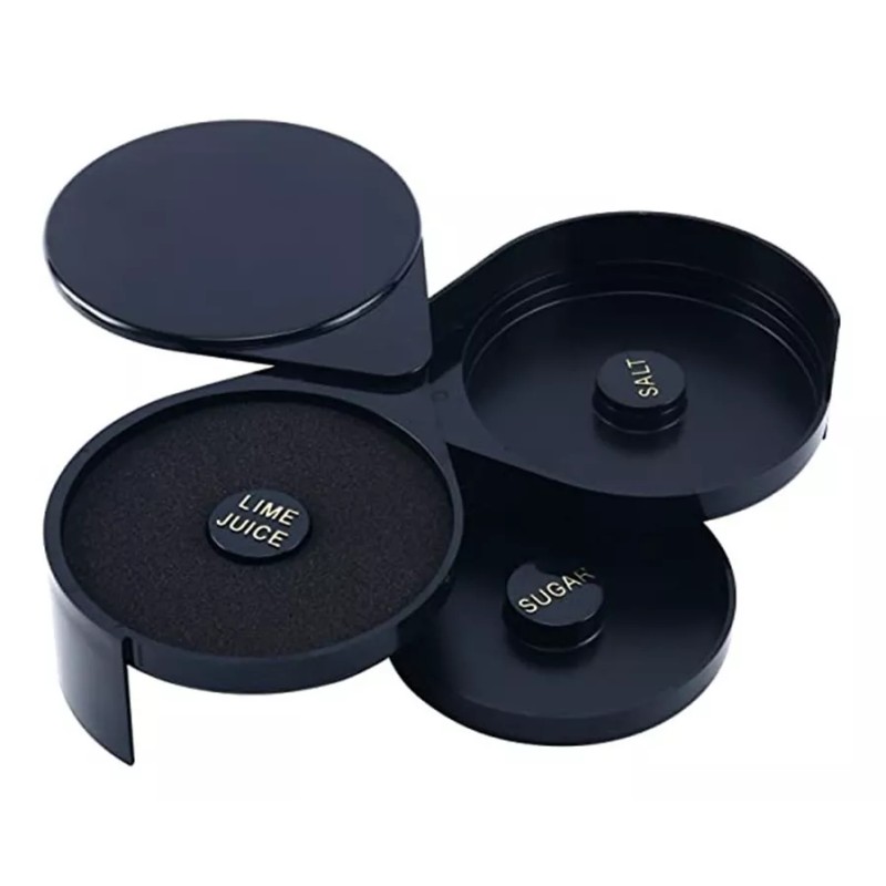 Rimmer de vidrio de 3 niveles, 3 bandas giratorias, designadas para sal, ázucar y jugo de Lima.