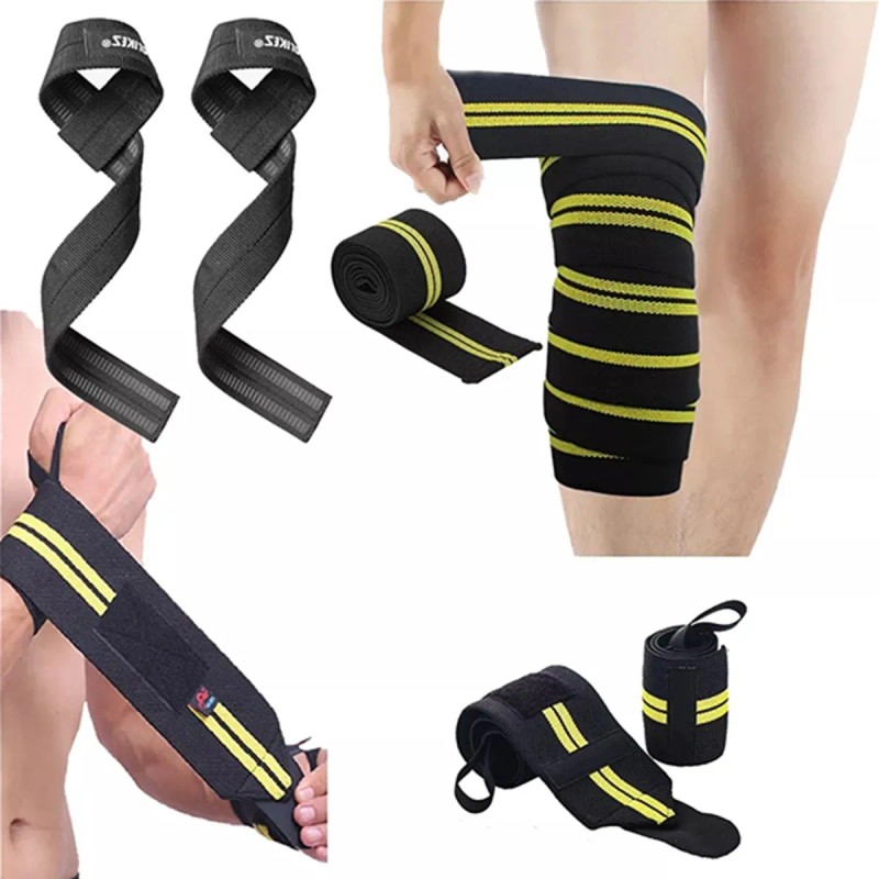 ¡Entrena con potencia, seguridad y estilo! Este pack completo de soporte deportivo incluye vendas para rodillas, muñequeras y straps para levantamiento de pesas, diseñados para ofrecer máxima protección articular y mayor rendimiento en tus rutinas de fuerza 💪.