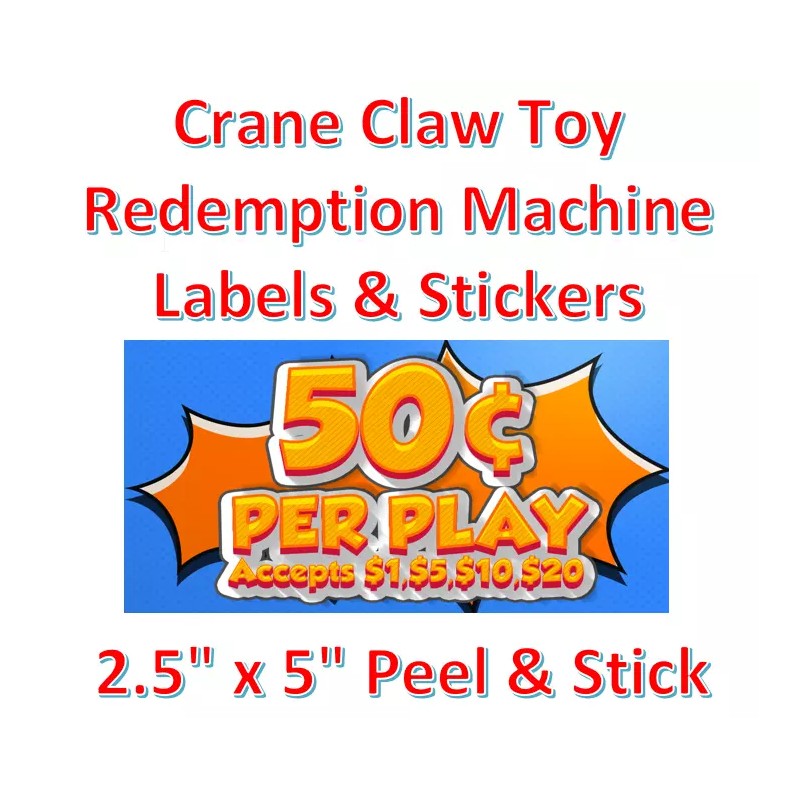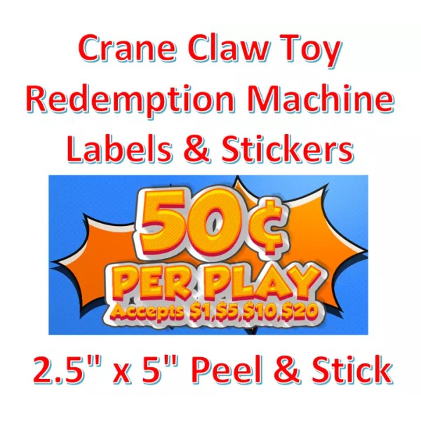 Crane Claw candy vending machine Labels Sticker Decal Price
