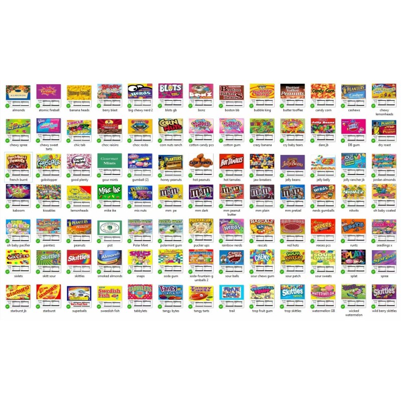 Vendstar 3 pack VENDING MACHINE CANDY LAMINATED (non adhesive) LABELS with NUTRITION