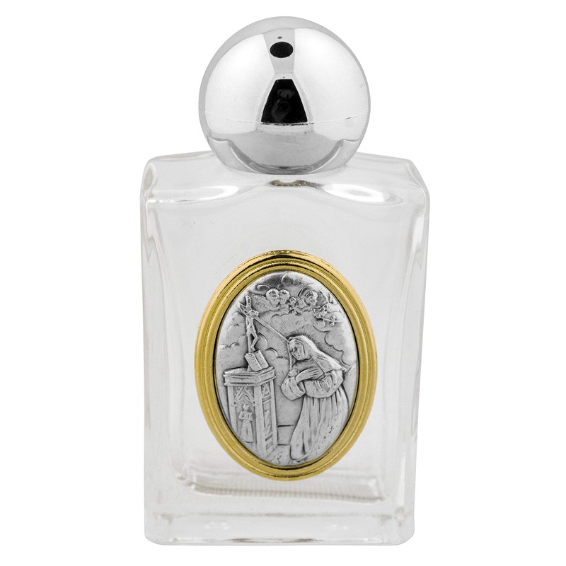Venerare Glass Holy Water Bottle with Gold Accent (Saint Rita)