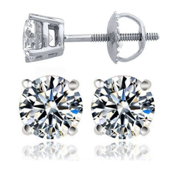 - Classic 4 prongs design with screw-back backings, so that you need not worry of losing them. Choice of different stone sizes. 14k white gold plated over 925 solid silver. They usually would not cause any reactions.