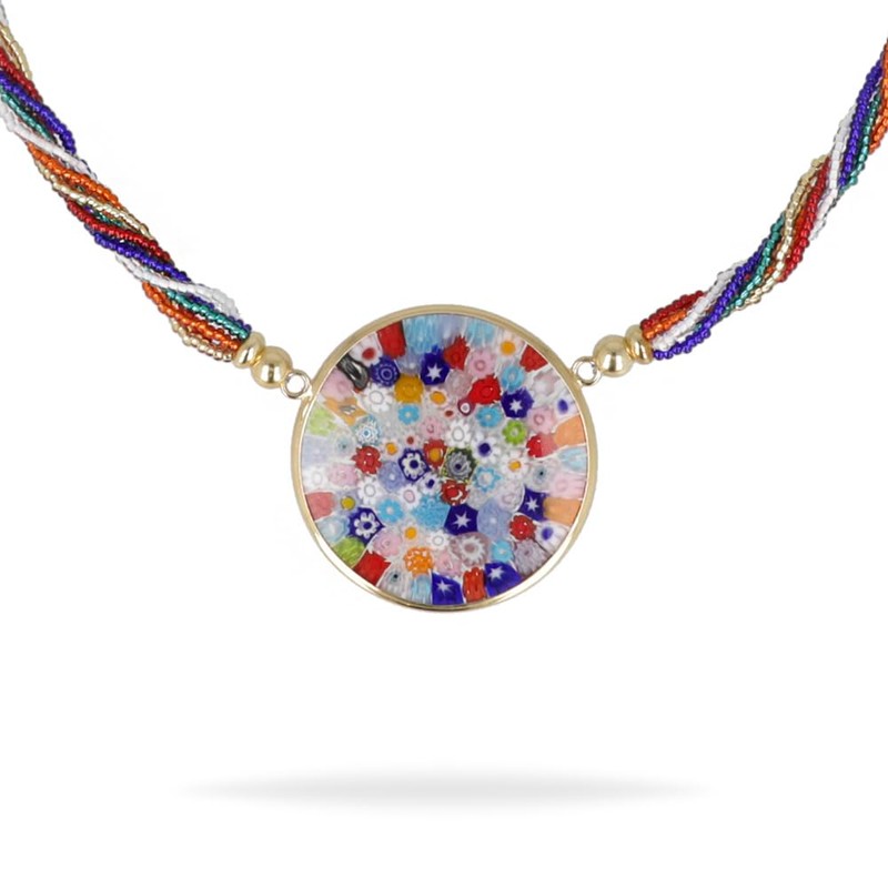 Venetiaurum - Halskette mit Murrina 36mm und Perlen aus Original-Murano-Glas und 925er Silber - Schmuck “Made in Italy” zertifiziert
