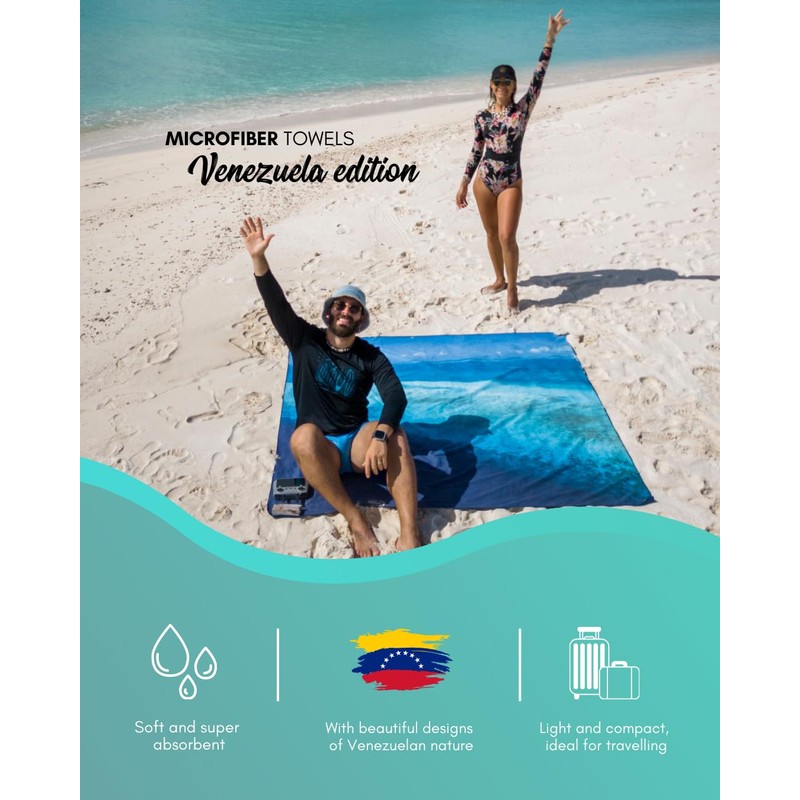 Venezuelan Landscape Microfiber Towel – Ultra-Absorbent, Fast-Drying & Compact – Ideal for Beach, Camping & Travel I Cayo de Agua Los Roques @DosLocosDeViaje