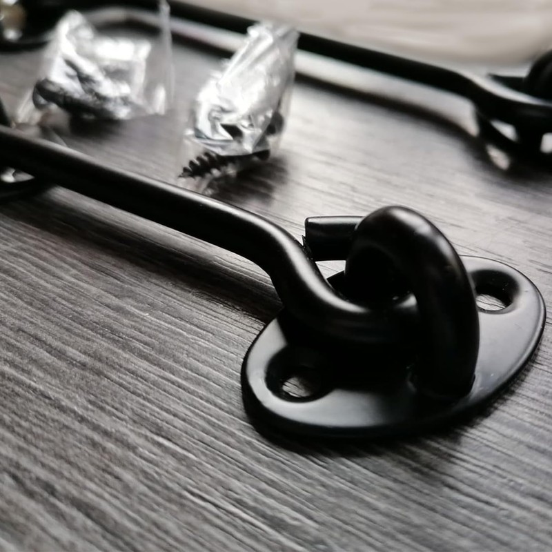 VENGABY Pack of 4 Storm Hooks, Cabin Hooks with Eyelet, Stainless Steel Door Hooks, Window Hooks, Storm Hooks for Swing Door, Wood, Shutters, Wood, Barn Door, Garden Gate, Latch with Mounting (Black,