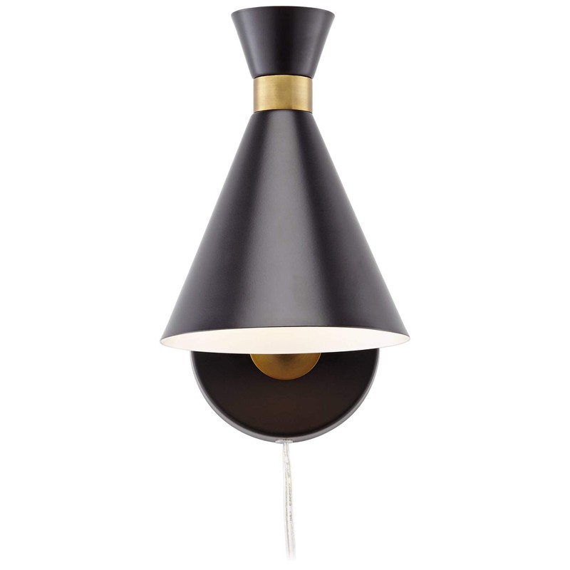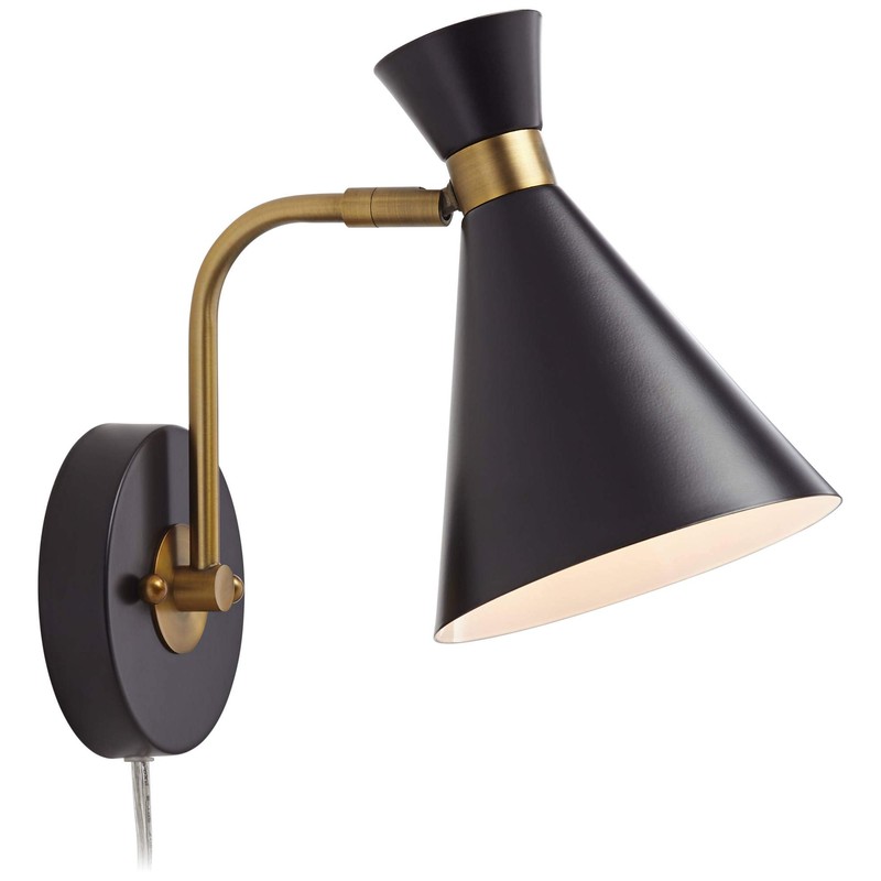 Venice Mid Century Modern Adjustable Wall Lamp Matte Black Antique Brass Plug-in Light Fixture Metal Cone Shade for Bedroom Bedside House Reading Living Room Home Hallway Dining - 360 Lighting by 360 Lighting Store