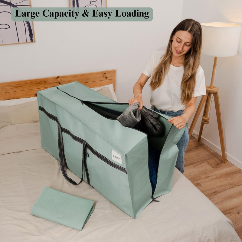 - Multi-Purpose – Designed thoughtfully for better moving, these extra large storage bags are great for storing, transporting, and organizing all sorts of items like clothes, shoes, towels, pillows, comforters, blankets, holiday decor, and more. They are perfect for storing outdoor cushions and other large items. College students use these bags for moving in or out of dormitories, making them an essential for anyone needing versatile and durable storage solutions.