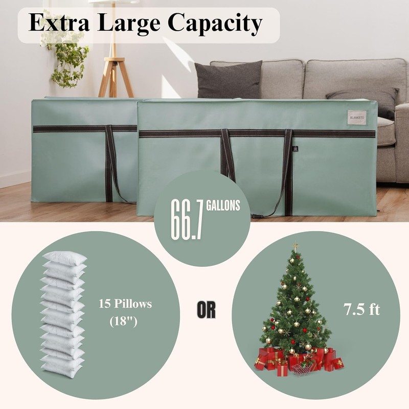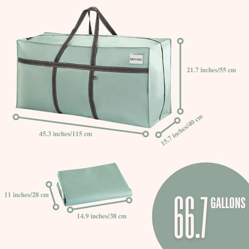 - Extra Large Storage Bag – Measuring 45.3" W X 21.7" H X 15.7" D, this large moving bag is twice the size of general packing bags on the market. It can store a large amount of clothes, blankets, pillows, beddings, and organize other household items all at once, helping you save space in your closet or storage basement. Easily identify your items with the clear tag pocket, perfect for custom labels to distinguish your belongings quickly. This bag can also store a 7.5 ft Christmas tree, making it ideal for Christmas tree storage.