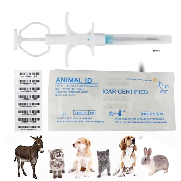 - 【Injection of the Microchip】 It's best to microchip your pet during neuter surgery. It can be easily injected by a veterinary doctor or someone trained in it below the skin at the back of the neck or underneath the ears. It is a glass tag and small in size for easy injection.