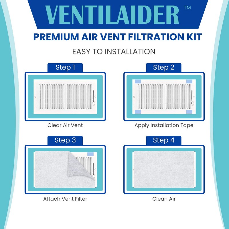 FITS ANY SIZE AND TYPE OF VENTS - This filter works with vents of all sizes. The roll can be cut to your desired size including popular sizes such as 4"x10", 4"x12", 8"x15" and 14"x14". Simply stick the installation strips to the edge of the air vent or air intake register and then place the filter on top.