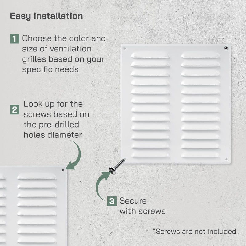 - Premium material: Louvre air vents are made of quality steel, environment friendly and non-toxic. Built-in mesh.