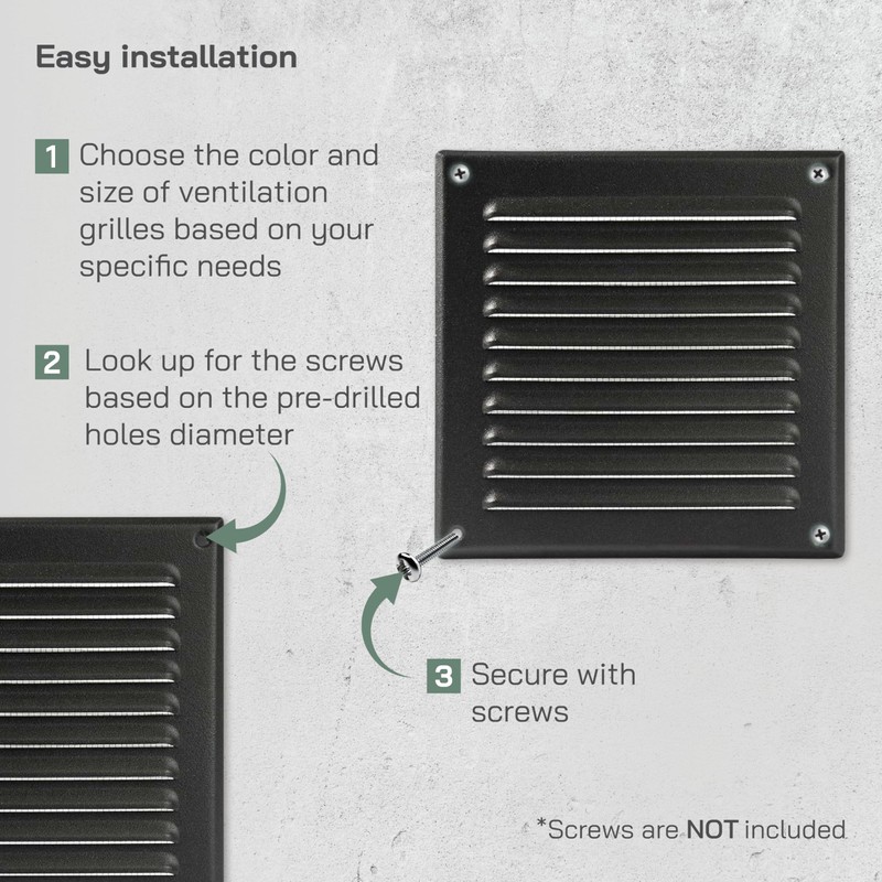• Square ventilation grille, made of high quality galvanised steel and coated with a durable epoxy finish. No screws included.