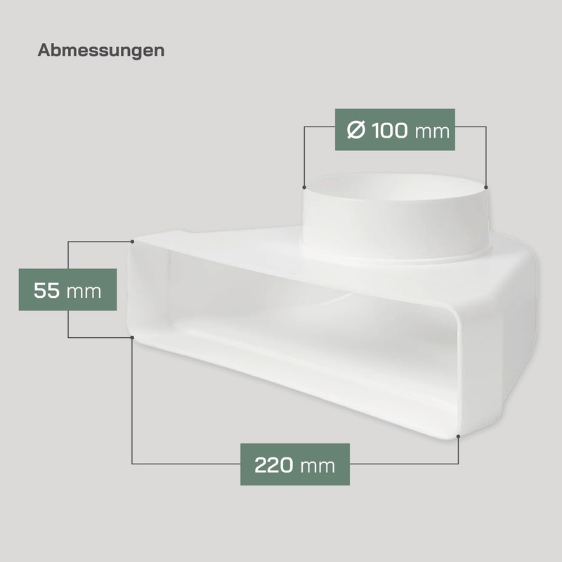Vent Systems 90 Degree Angle Connector for 220 x 55 mm Rectangular Ducts to Ø100 mm Round Pipes. Ventilation System, Heating, Cooling