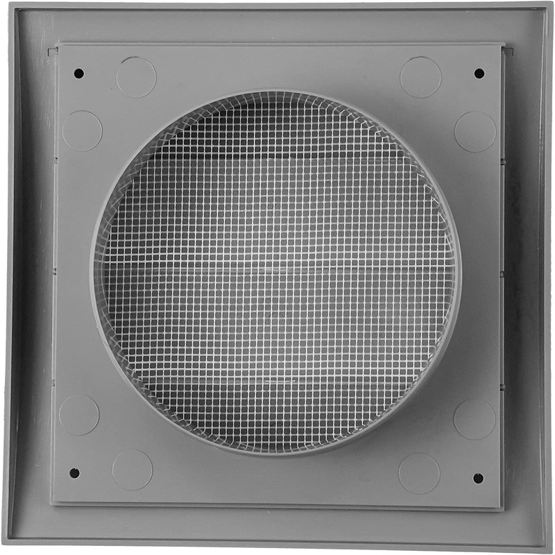 Vent Systems Diameter 125 mm, 190 x 190 mm, grey, HVAC exhaust duct cover, cooker hood, outdoor dryer vent cover with opening flap, air conditioner, air extractor, wall duct, weather protection grille