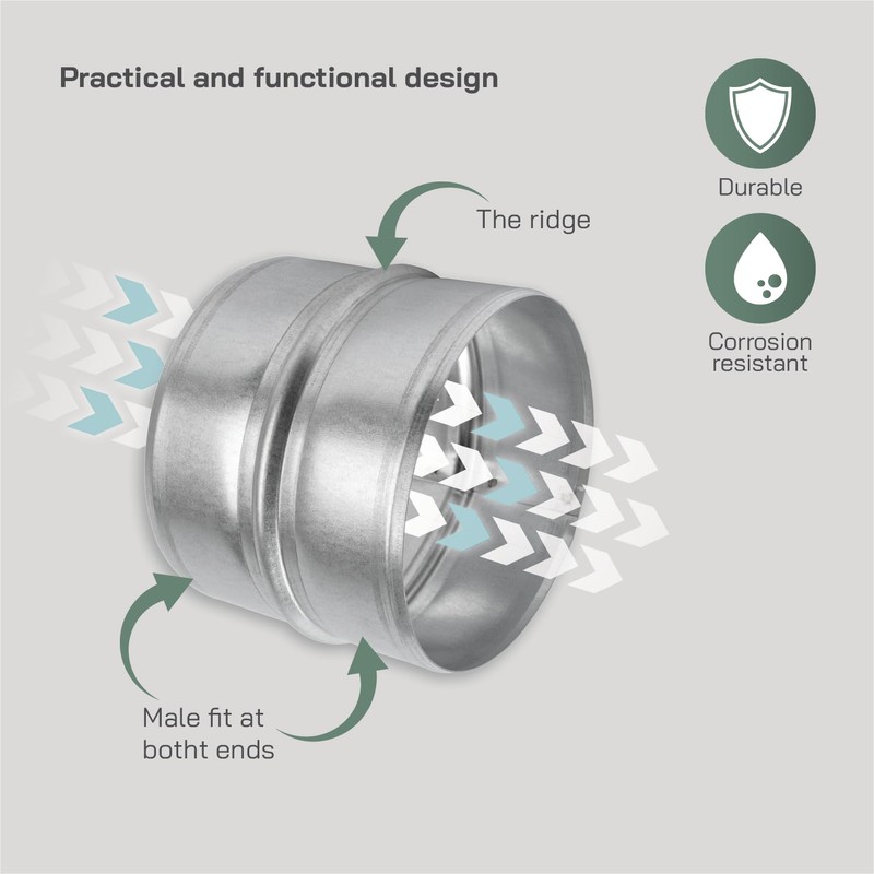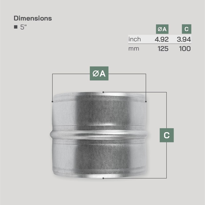 Vent Systems Galvanised Steel Pipe Connector 125mm Round Vent Duct Extension - Metal Hose Coupling - Galvanised Pipe Connector