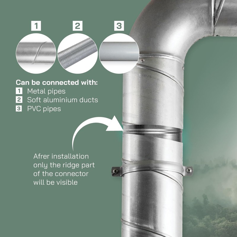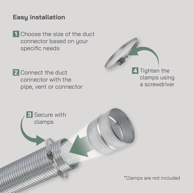 - EASY TO INSTALL - Fits perfectly with any other 125mm pipe, vent or connector. The pipes must be fixed with steel clamps to hold them firmly and securely
