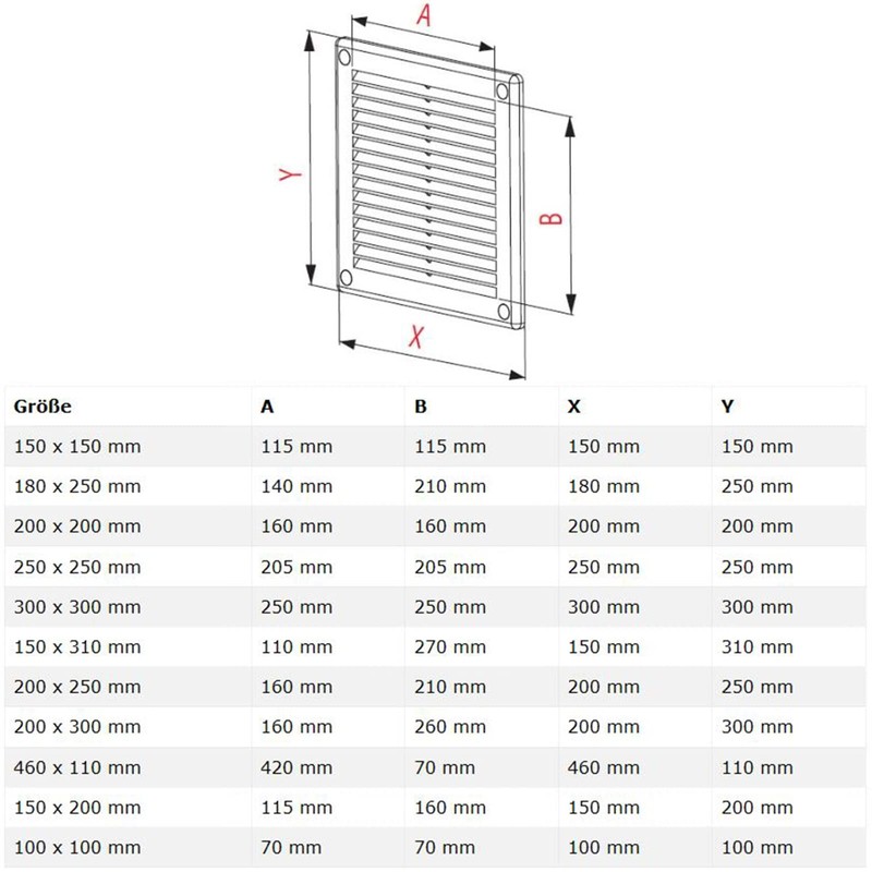 - The ventilation grille measures 300 x 300 mm and a hole spacing of 250 mm