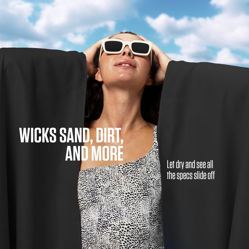 Lastly, let's talk about versatility beyond drying. This towel is not just super-absorbent and quick-drying; it's also designed to wick away sand, dirt, and other particles. Simply let it dry, give it a shake, and you’ll find that it repels debris with ease, making it an ideal choice for beach visits, camping, and other outdoor activities.