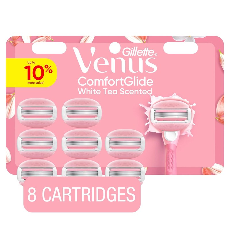 Venus ComfortGlide White Tea Women's Razor Blades, with Built-in Shave Gel Bars, 8 Razor Blade Refills